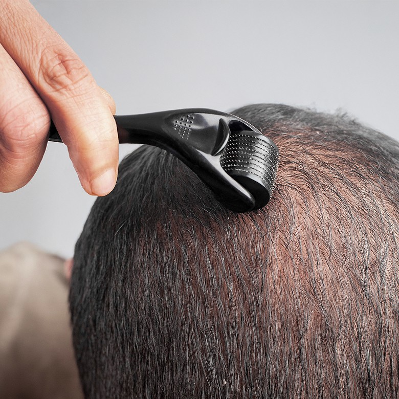 The roller is well-designed with a good grip, and the needles don’t feel too harsh on the scalp.